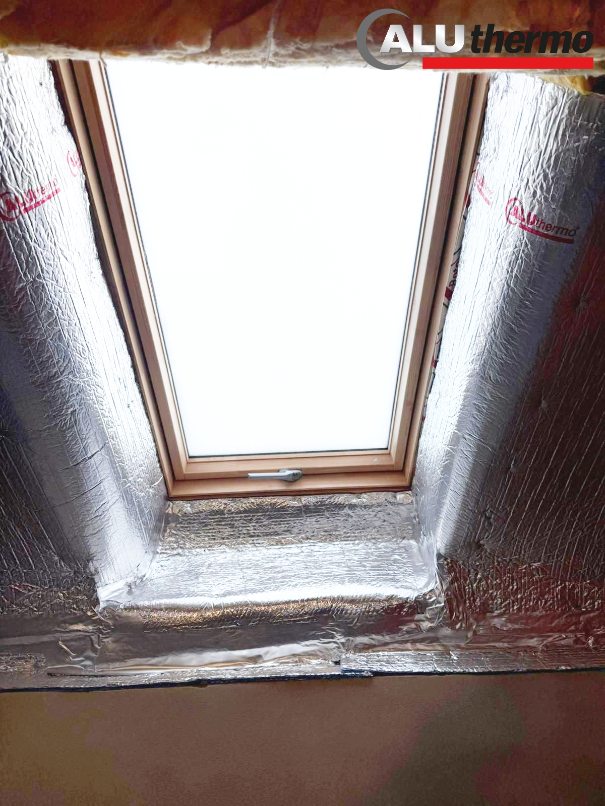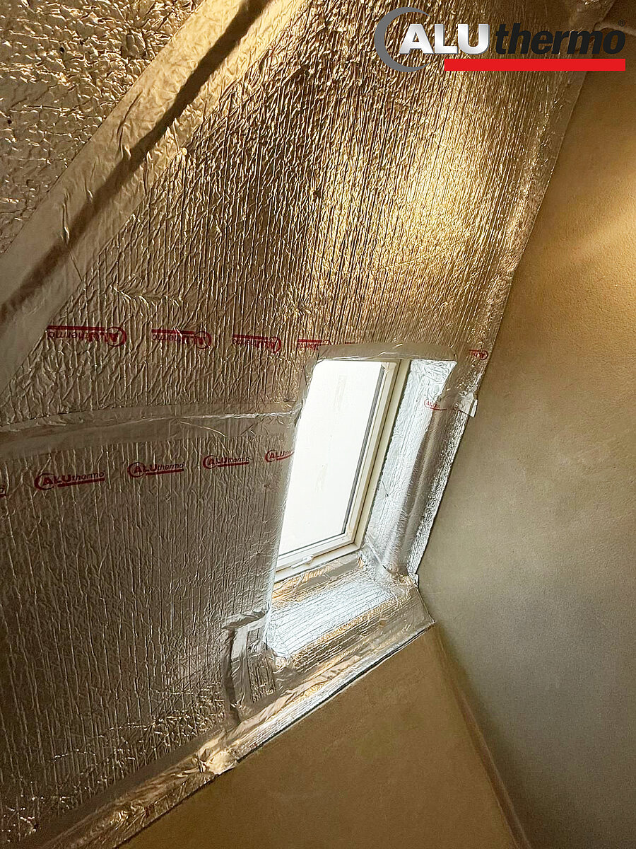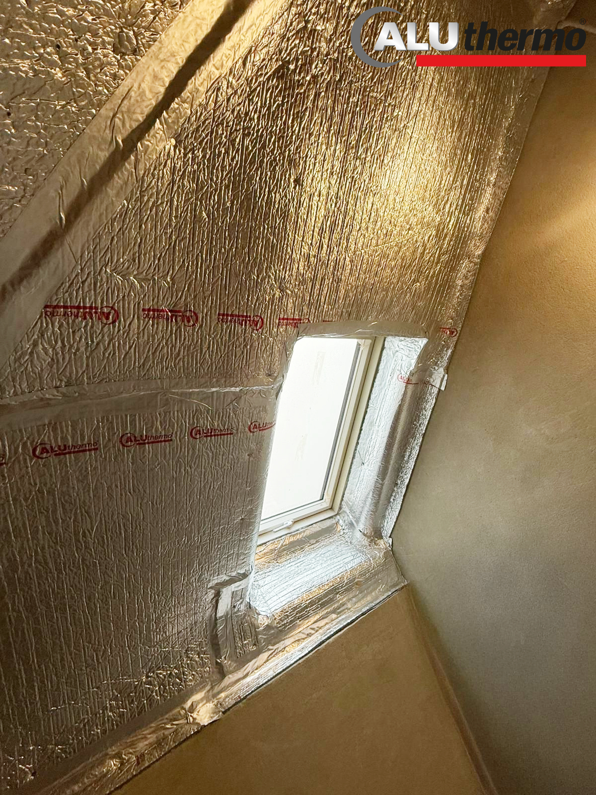 Aluthermo® QUATTRO zastosowano na całej połaci dachu, również w newralgicznych strefach wokół okien połaciowych. Takie podejście pozwala skutecznie ograniczyć mostki termiczne, ustabilizować temperaturę pod dachem i poprawić efektywność całego układu izolacyjnego zarówno zimą, jak i latem.