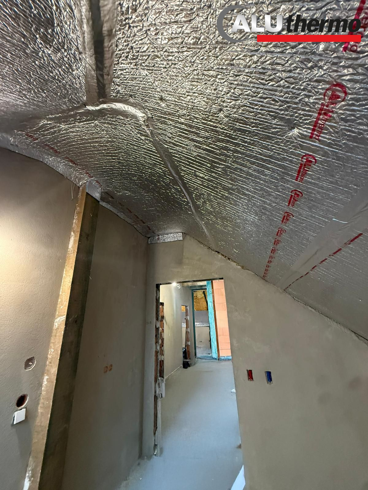 Kolejna realizacja z Aluthermo® QUATTRO pokazuje, jak wiele można zyskać, łącząc nowoczesną izolację refleksyjną z klasycznymi rozwiązaniami. W Droginii wykonano ocieplenie poddasza w systemie podkrokwiowym, prowadząc izolację konsekwentnie aż do samej kalenicy - bez przerw i słabych punktów.
